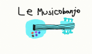 Le Musicobanjo est un instrument assez spécial. C’est un instrument basé sur la forme d’un banjo. Ce qui le rend hors du commun c’est que ce Musicobanjo a six cordes. Sa couleur est d’un bleu très pâle et ses clefs d’ajustement est d’un bleu turquoise. Mon instrument a plusieurs boutons de certaines couleurs. Le bouton bleu sert à faire une chanson de piano, le bouton orange sert à faire une chanson de guitare électrique, le rose une de violon, le brun une de saxophone et le mauve sert à faire une chanson de ukulélé. Mais à ne pas oublier c’est que quand vous appuyez sur ces boutons, l’instrument sonne toujours comme un banjo, mais on peut accompagner la chanson avec le Musicobanjo. Sur mon instrument, il y a une enceinte qui est située vers le bas de mon instrument. Celle-ci est reliée au micro qui est situé au-dessus du manche du Musicobanjo. Cet instrument n’est pas très gros mais il est quand même lourd. C’est un instrument à cordes et à percussion. Pourquoi à percussion? Car il y a un petit tambour situé à droite de l’instrument. L’instrument sonne comme un banjo mais avec d’autres sons variés.