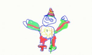 Attention, depuis quelques jours, un méchant magicien menace le royaume de Château-Richer. Son nom est KingKong. Il a les cheveux verts, bleu claire et jaune fluo. De plus, il a les yeux roses et des souliers oranges avec un chandail mauve. Il a des culottes vertes trouées et sa peau est blanche. Aussi, il a des très grosses oreilles et il est très grand.