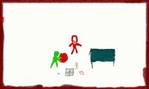Le Père Noël continue à courir. Il essaye d’attraper le Grincheux, mais ça ne marche pas. Il essaye de l’attraper par son bras et ça fonctionne. Le Père Noël se prépare pour la distribution de cadeaux.