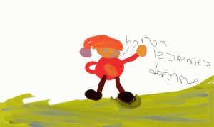 Il se  dit que peut-être que Mère Noël en a gardé en réserve alors il lui dit: