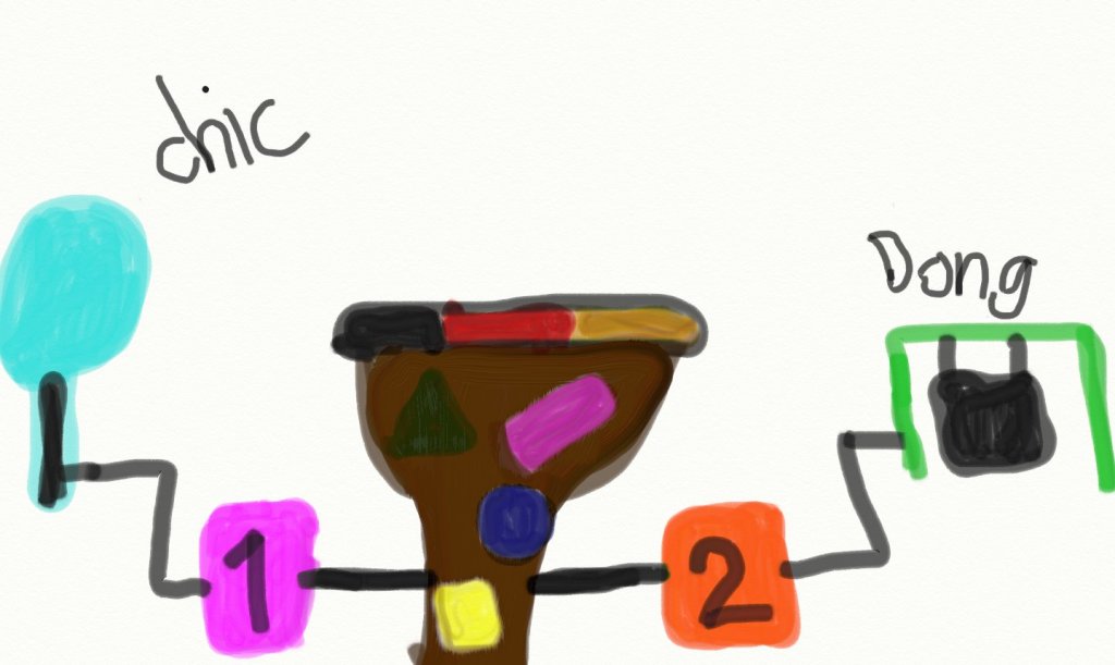 - Avec le côté tambour tu dois prendre les deux baguettes et le côté cordes tu dois prendre le coquillage.