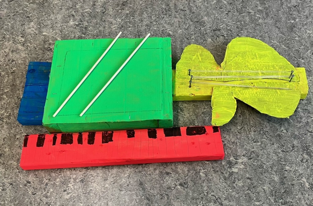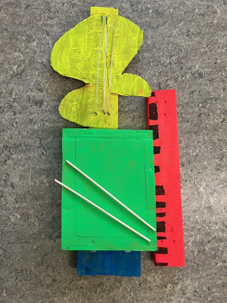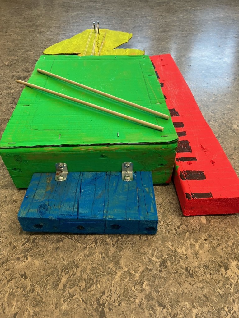 Mon instrument est de forme rectangulaire. Il est fait de bois et a 17 cordes. Sa couleur est rose et noir. Il mesure 10 cm. Le son est grave et fort. C’est un instrument à cordes.