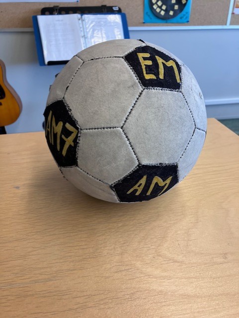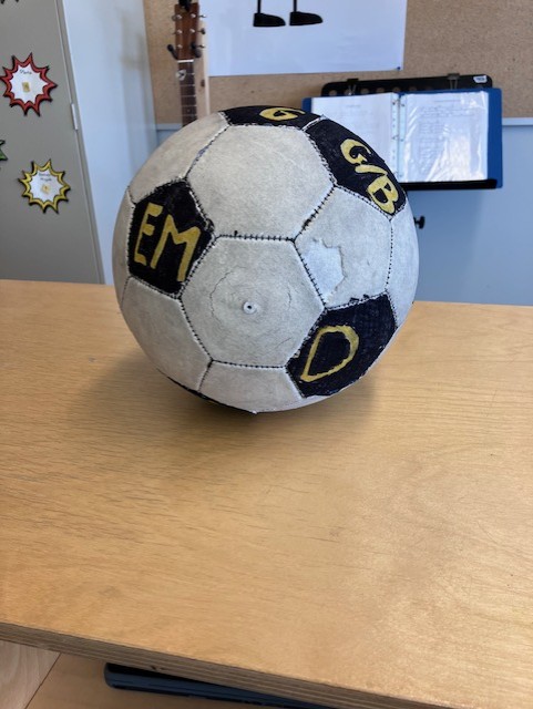 Le ballonmusical est rond et il est de toutes les tailles de ballon de soccer possibles. Il peut être de 10, 20, 30, 40, 50, 60 et 70 cm. Le ballonmusical a des accords de guitare sur les hexagones noirs comme em, d, c, g, dm7, am, am7 et G/B. Le ballonmusical est à percussion.