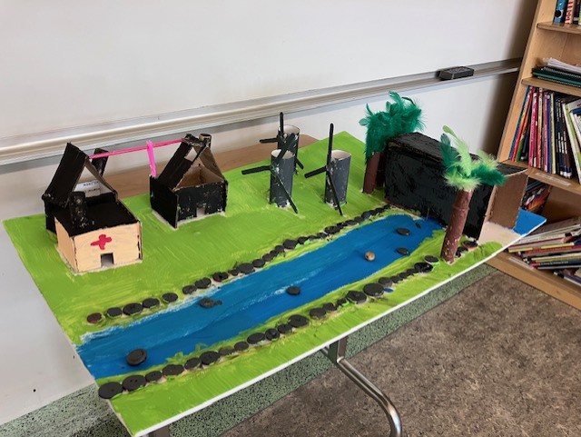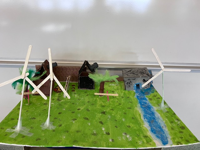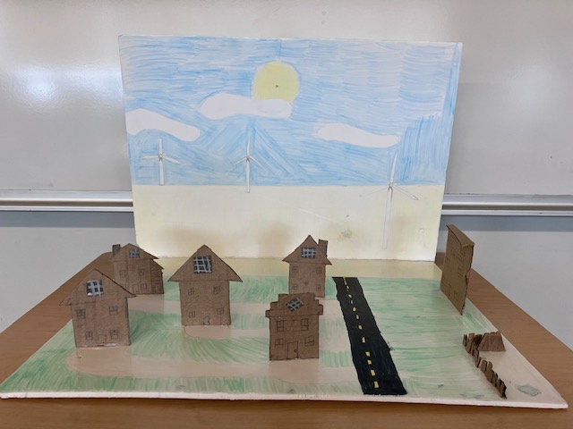 Pour conclure notre module, les élèves ont imaginé un petit village alimenté par deux sources d’énergie renouvelables. Voici le résultat de leurs maquettes !